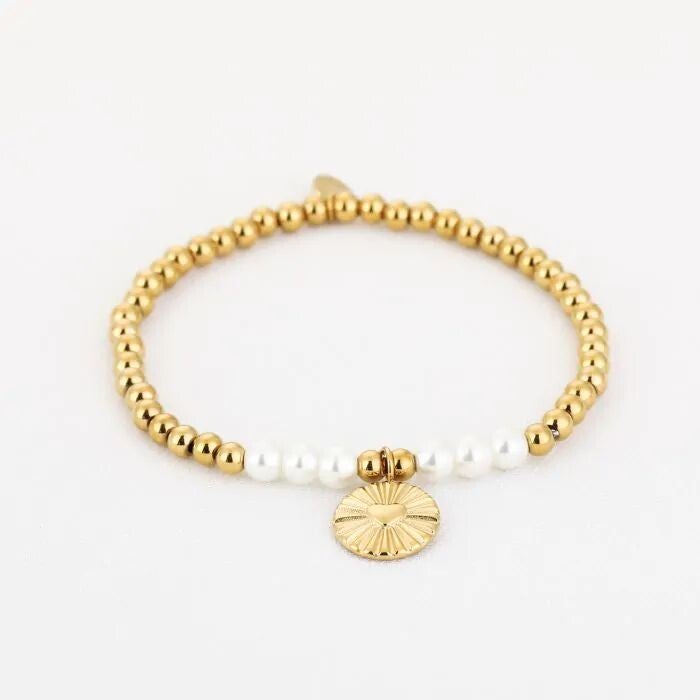 kralen armband met bedel wit goud